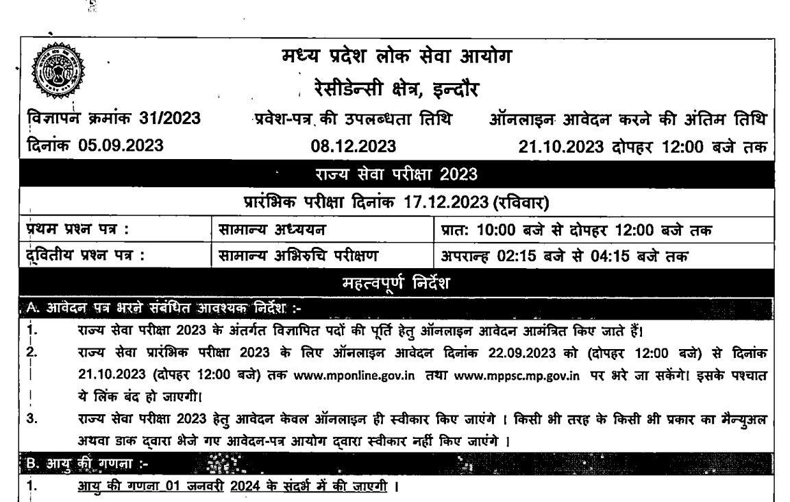 राज्य सेवा परीक्षा 2023 के लिए भर्ती विज्ञापन